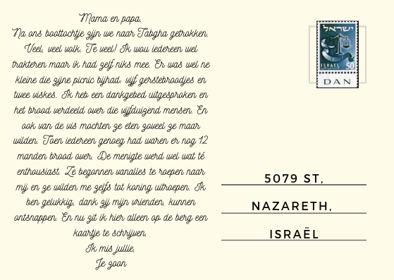 12 Op de eerste dag van het feest van de ongedesemde broden, wanneer men het paaslam slachtte, zeiden zijn leerlingen tegen Hem: ‘Waar wilt U dat wij voorbereidingen gaan treffen voor het paasmaal?’ 13 Daarop stuurde Hij twee van zijn leerlingen eropuit met de opdracht: ‘Ga naar de stad. Daar zal jullie iemand tegemoet komen die een kruik water draagt. Volg hem, 14 en zeg waar hij binnengaat tegen de heer des huizes: “De meester laat vragen: Waar is de kamer waar Ik met mijn leerlingen het paasmaal kan houden? ” 15 Hij zal jullie een ruime bovenzaal wijzen, die ingericht is en op orde gebracht. Maak het daar voor ons klaar.’ 16 De leerlingen gingen weg en kwamen in de stad. Ze troffen het aan zoals Hij hun gezegd had, en ze maakten het paasmaal klaar.