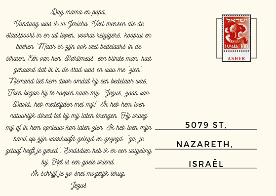 46 Ze kwamen in Jericho. Toen Hij uit Jericho wegging met zijn leerlingen en heel wat mensen, zat de zoon van Timeüs, Bartimeüs, een blinde bedelaar, langs de weg. 47 Toen hij hoorde dat het Jezus van Nazaret was, begon hij te schreeuwen en te roepen: ‘Zoon van David, Jezus, heb medelijden met mij.’ 48 Velen snauwden hem toe dat hij zijn mond moest houden. Maar hij schreeuwde nog harder: ‘Zoon van David, heb medelijden met mij.’ 49 Jezus bleef staan en zei: ‘Roep hem.’ Ze riepen de blinde : ‘Houd moed, sta op, Hij roept u.’ 50 Hij wierp zijn jas weg, sprong overeind en ging naar Jezus. 51 Daarop zei Jezus tegen hem: ‘Wat wilt u dat Ik voor u doe?’ De blinde zei Hem: ‘Rabboeni, dat ik weer kan zien.’ 52 ‘Ga,’ zei Jezus, ‘uw vertrouwen is uw redding.’ Meteen kon hij weer zien, en hij volgde Hem op zijn weg.